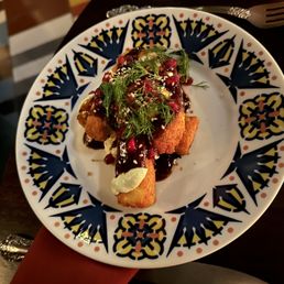Absolutely love this place - especially the happy hour! Their decor and ambiance is very aesthetically pleasing and the space is really big so it's great for larger groups. The menu items are very unique and the happy hour specials are really good, and it includes Saturdays. The cherry blossom cocktail is super tasty and the Turkish coffee pot is good if you like coffee! It's a strong taste and presentation of the drink is really cute. The service was great and I would definitely come back to try more of their cocktails and dinner items! In the summer it looked like they have an outdoor space which would be really cute for a girls night, date, etc. when the weather is nice.